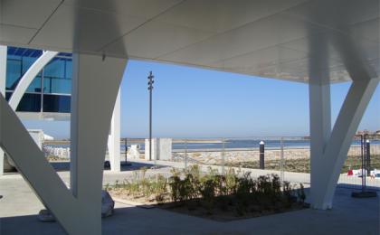 A estrutura é revestida, ora por chapas punçoadas em painel compósito, ora por envidraçados amplos. A conjugação dos vários materiais contribui para a harmonia arquitectónica do conjunto e a valorização da paisagem ribeirinha envolvente.