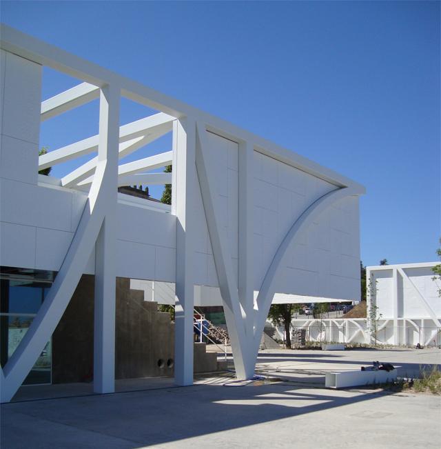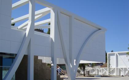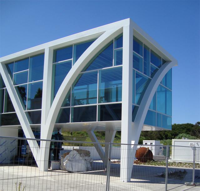 A estrutura metálica, da autoria da O FELIZ Metalomecânica, foi realizada em tubos metálicos de secção quadrada 400 mm x 400 mm, com diferentes espessuras. Atipicamente a estrutura assume-se no exterior do edifício, obrigando a uma cuidada pormenorização dos remates entre a estrutura e os elementos de fachada, por forma a garantir a estanqueidade do conjunto, bem como a qualidade do acabamento superficial.